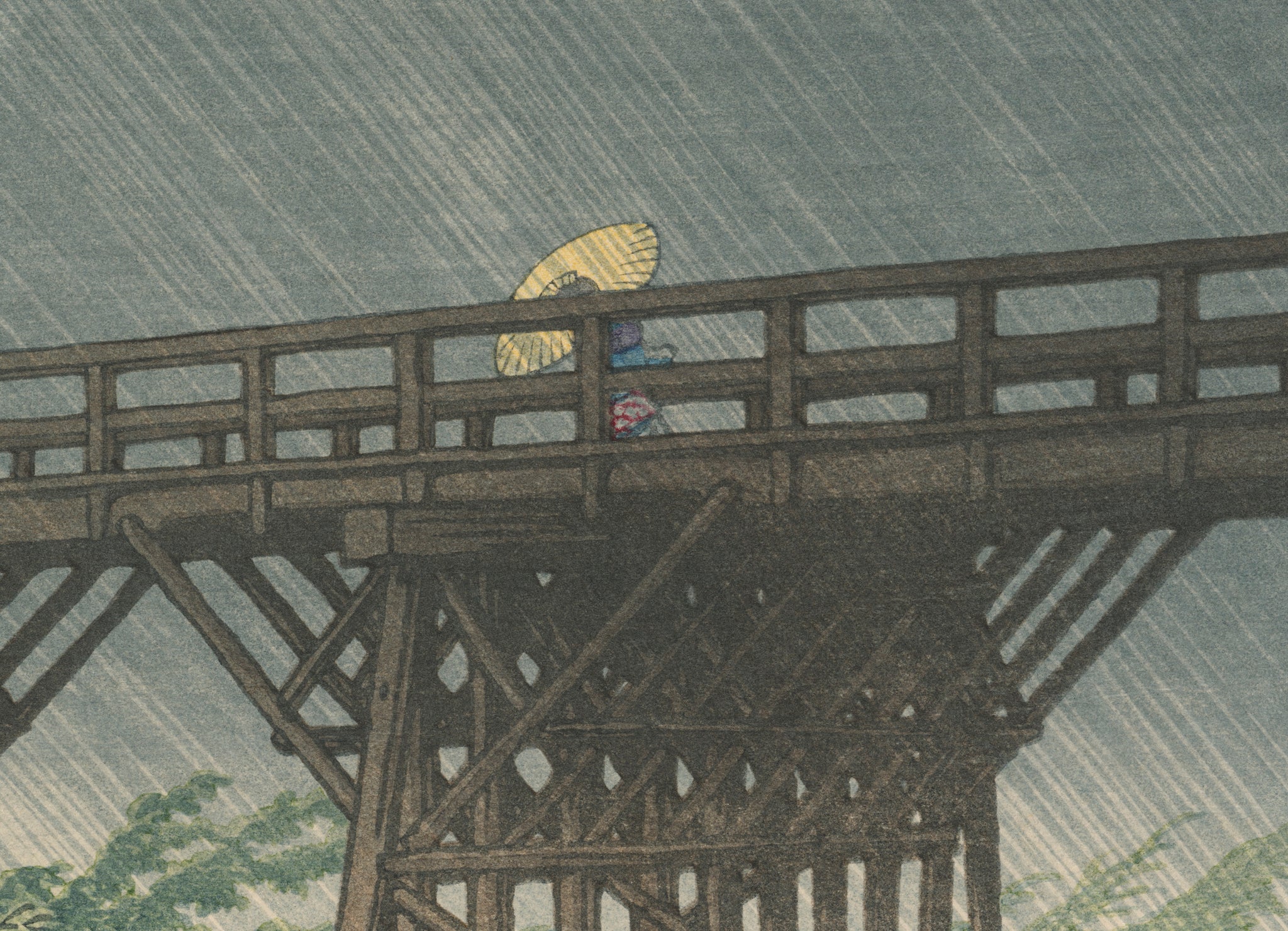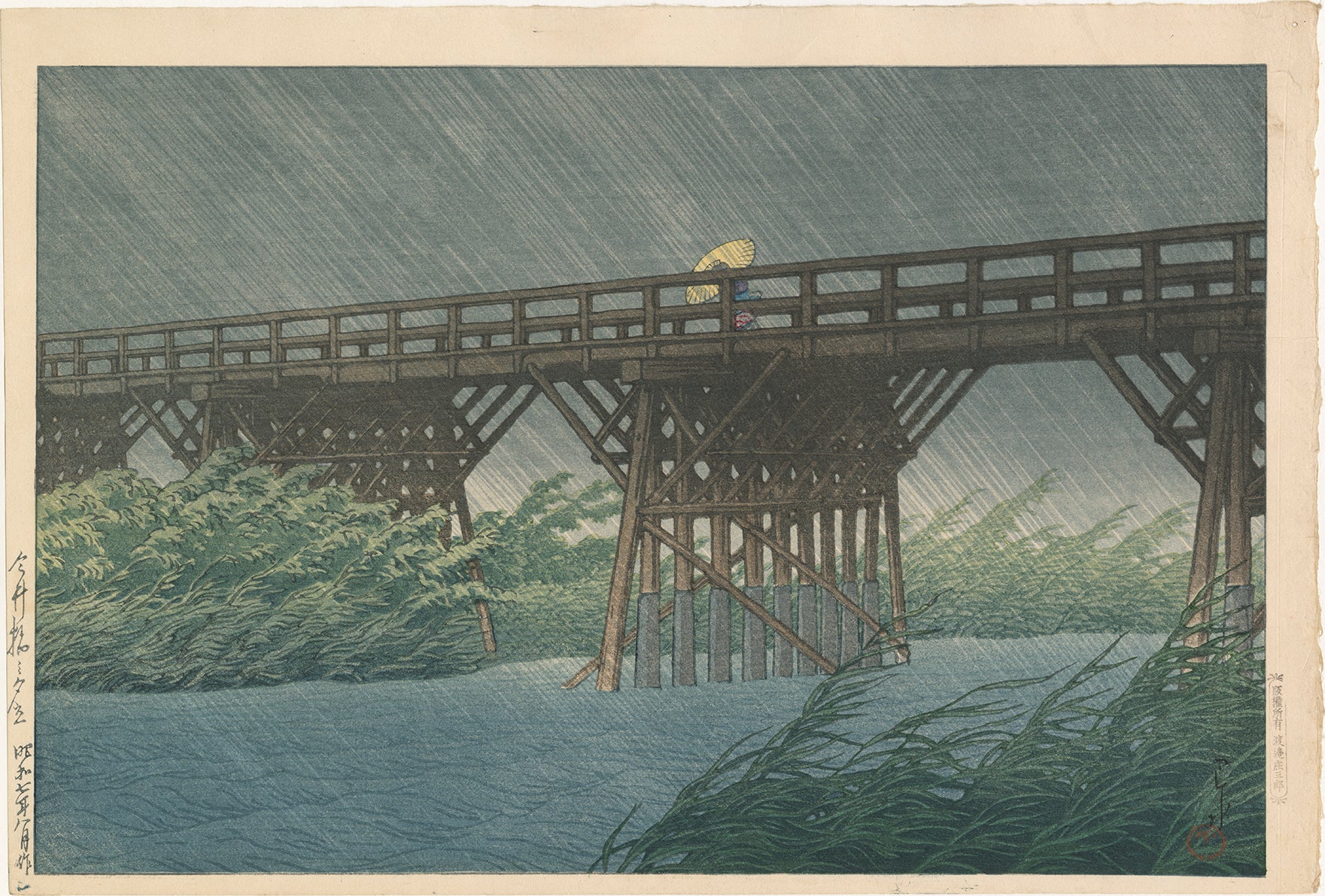 Hasui 巴水: Evening Shower at Imai Bridge 今井橋 (First Edition) (RESERVED)