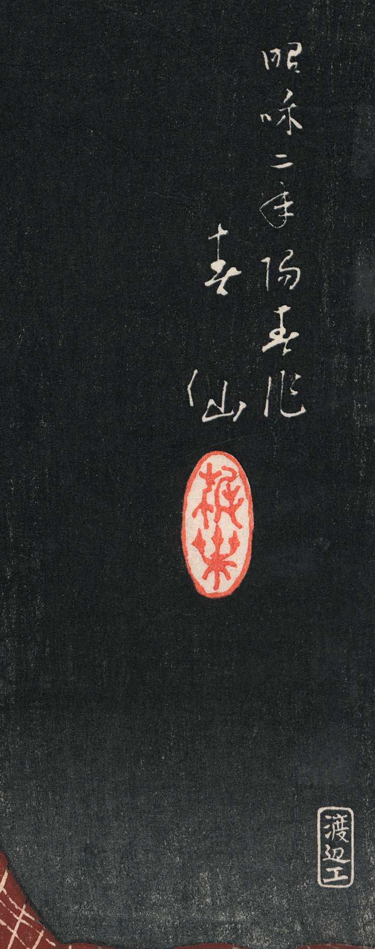 Literature: Lawrence Smith, The Japanese Print Since 1900: Old Dreams and New Visions, 1983, p. 73, cat. no. 49; Yamaguchi Keizoro, Natori Shunsen Exhibition Catalogue, Kushigata, 1991, p. 41, no. 30; Lawrence Smith, Modern Japanese Prints 1912-1989, 1994, cat. no. 43, pl. 42; Kozo Yamada, Shunsen Natori: Collection of the Kushigata Shunsen Museum of Art, 2002, p. 30, cat. no. 22; Lucie Folan et. al., Stars of the Tokyo Stage: Natori Shunsen's Kabuki Actor Prints, National Gallery of Australia, 2012, pp. 96-97; Carolyn M. Putney, Fresh Impressions: Early Modern Japanese Prints, Toledo Museum of Art, 2013, p. 193, cat. no. 155. See Museum of Fine Arts, Boston, The British Museum, Honolulu Museum of Art, Smithsonian, National Museum of Asian Art, Muller Collection, Waseda University.