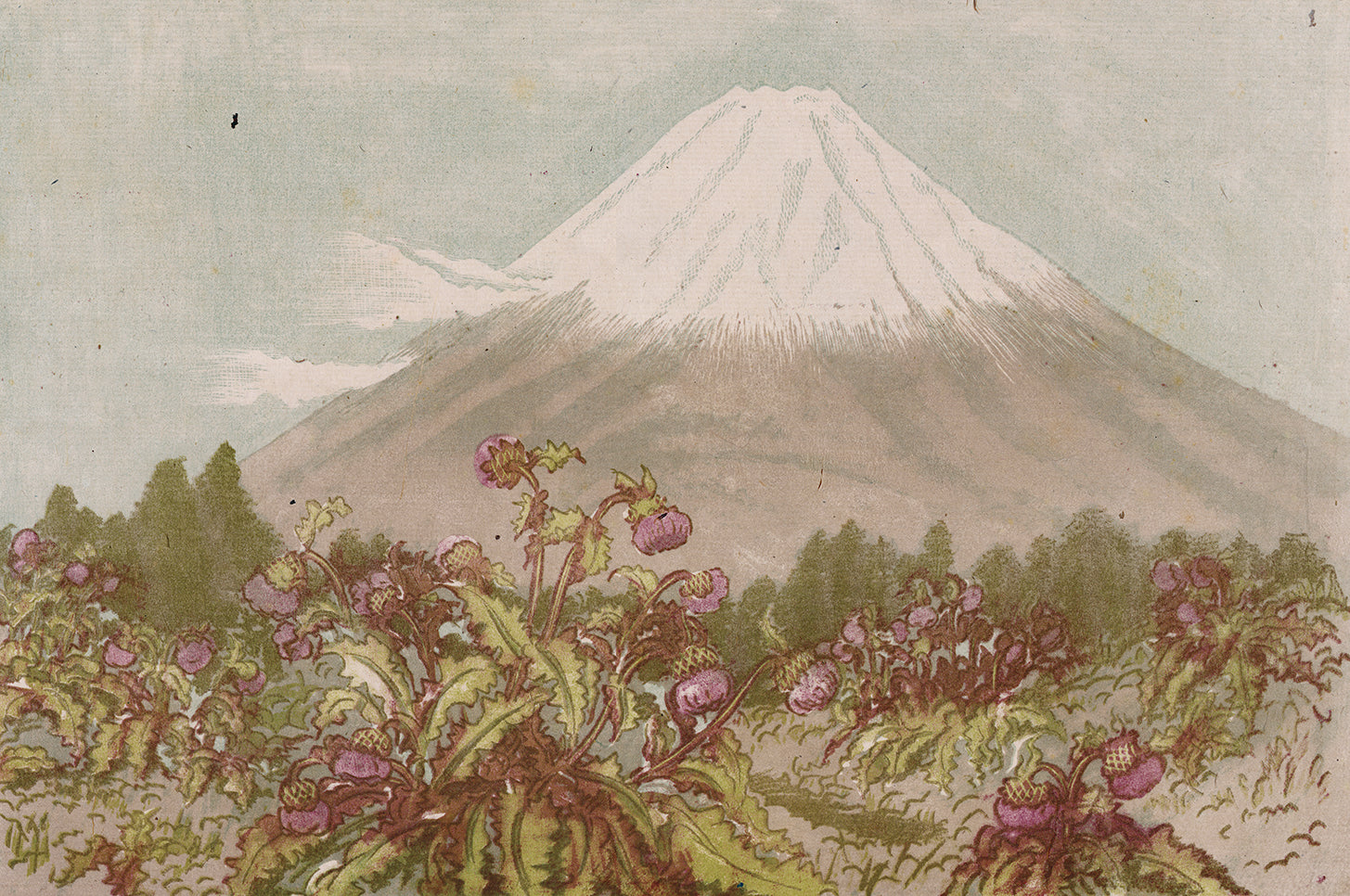 Title: Mount Fuji with Blooming Thistles, looking from from the Kogasaka Pass