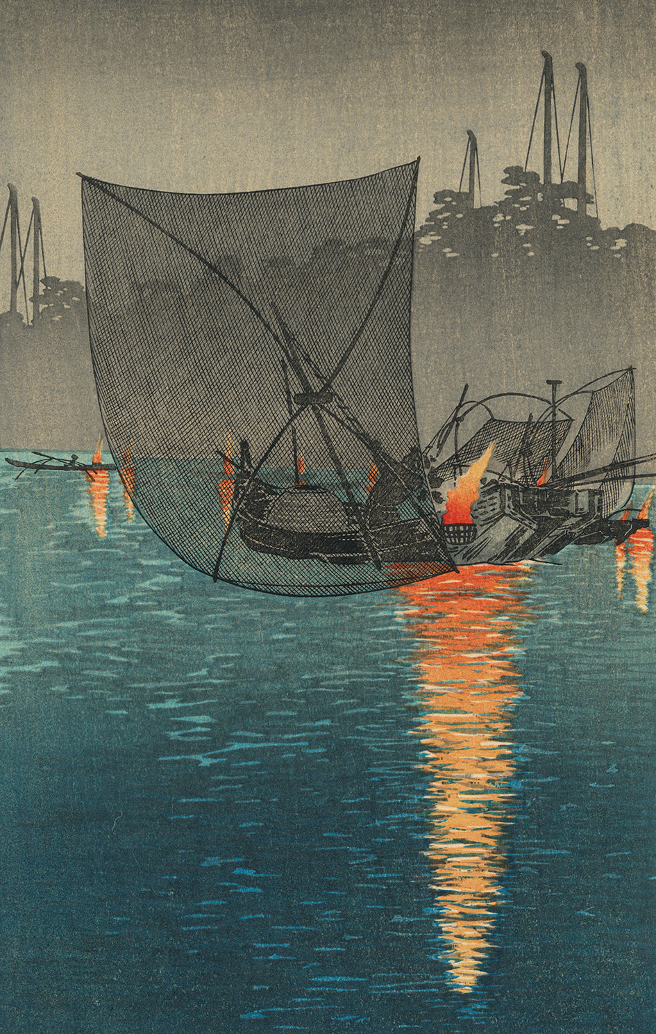 Title: Night Fishing Nets at Tsukuda Date:  ca. 1924-1927