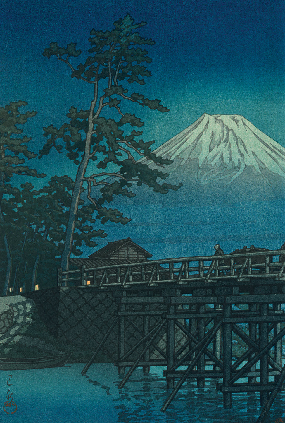 Hasui 巴水: Mount Fuji on a Moonlit Night, Kawai Bridge (SOLD)