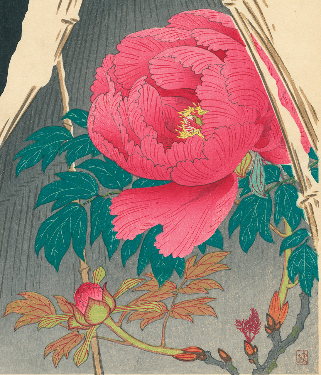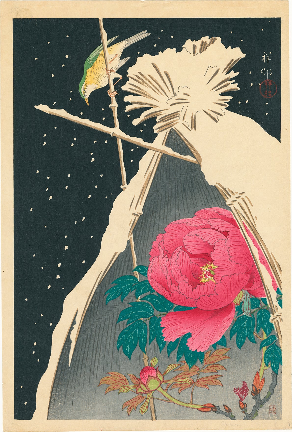 Koson 小原古邨 : Bright Songbird and Peony in Snow (SOLD)